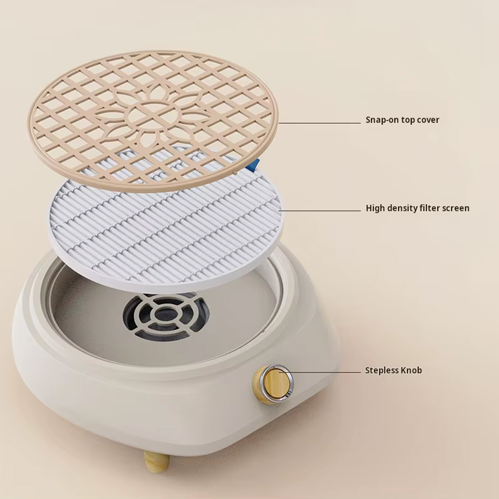 Característica principal: Reutilizável: Você pode remover facilmente o filtro e limpá-lo facilmente com um secador de cabelo ou escova de vácuo sem precisar substituí-lo sempre.Recomendamos substituir o filtro a cada 3 a 4 meses para garantir o melhor desempenho do aspirador de pó para unhas. Opção de baixo ruído: Este limpador de pó de unhas está equipado com um motor potente, de baixo ruído, você pode obter uma experiência mais confortável.Com o controle de botão sem fim, você pode ajustar facilmente o poder de sucção para atender às suas necessidades.