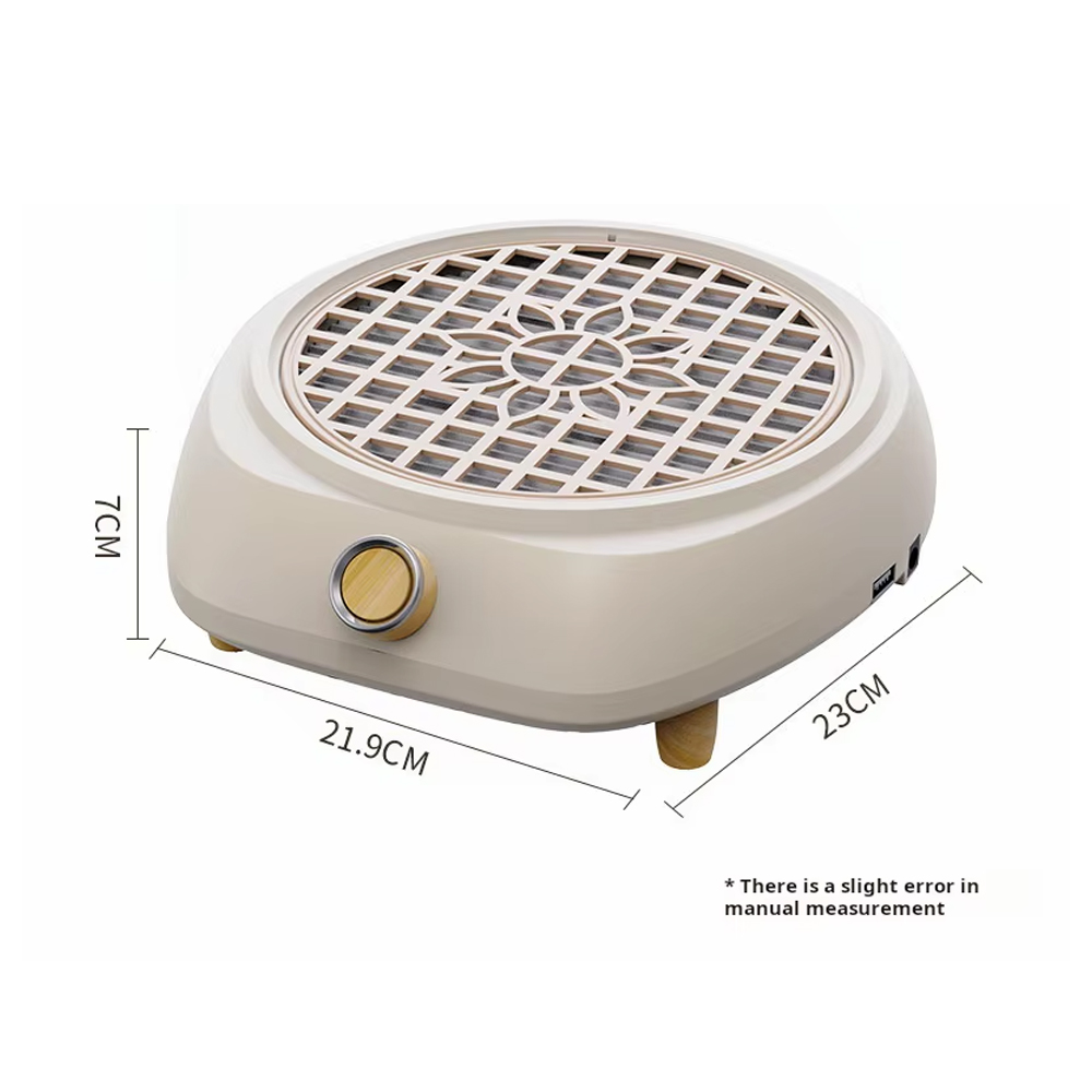 Especificação: Nome do produto: coletor de poeira de unhas Material: ABS Cor: bege Dimensões: 23 x 21,9 x 7 cm Velocidade: 4500 prm Potência: 100 W