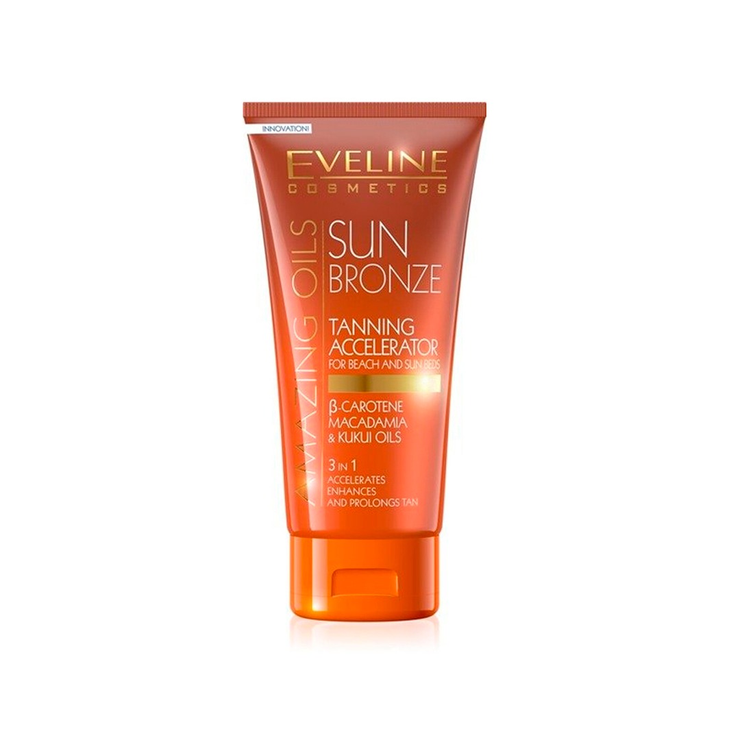 Eveline Cosmetics Sun Amazing Oils Tanning Accelerator for Beach and Sunbeds é um cuidado 3 em 1: acelera, potencia e prolonga o bronzeado na exposição solar e nas cabines de solário.