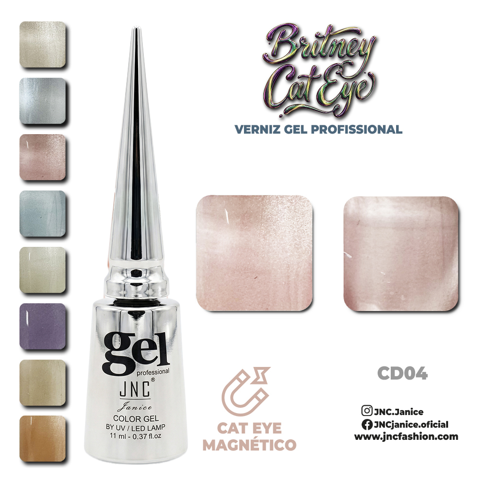 O JNC Britney Cat Eye é um verniz gel profissional com efeito magnético, ideal para criar looks modernos, profundos e cheios de dimensão. Através do íman, é possível criar o clássico efeito “olho de gato”, com reflexos luminosos que se movimentam conforme a luz.