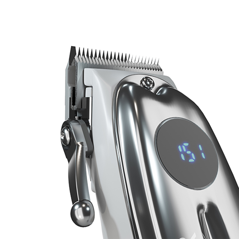 O Adler AD 2831 oferece um corte de cabelo profissional e preciso com uma lâmina de cerâmica. Uma bateria poderosa permite que você use a navalha por até várias horas, mas você sempre pode usar o cabo, se quiser. A máquina está equipada com 6 acessórios diferentes: 1,5, 3, 4,5 6, 9, 12, mm e uma cabeça ajustável com um comprimento de corte de 1,0-1,8 mm. O visor LCD mostra a porcentagem de carga da bateria.