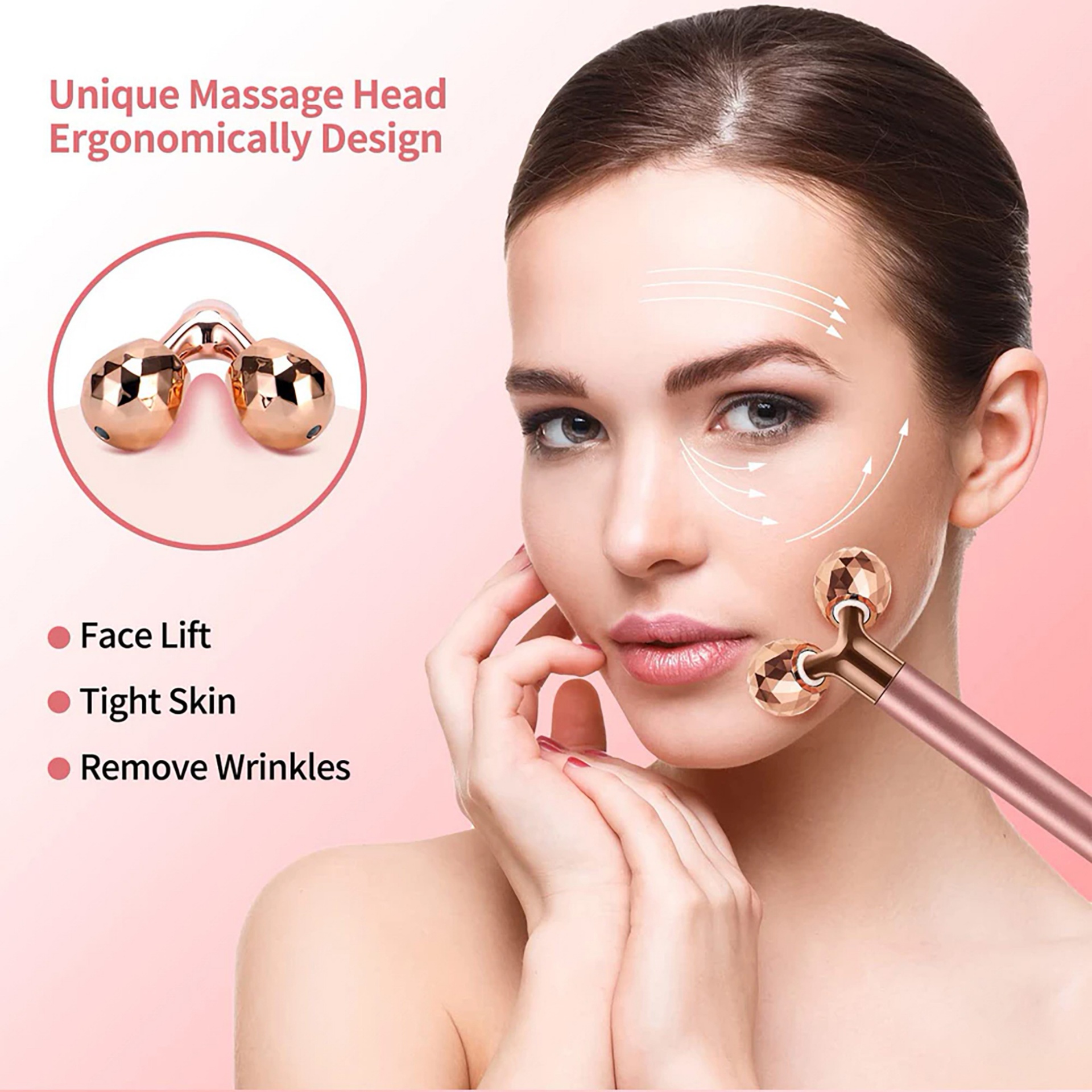 O rolo 3d tem uma excelente superfície de corte em formato de diamante, e o exclusivo 3d "v" design com 70 graus, efetivamente apertar a pele. Este rolo facial pode ser usado não só no rosto, mas também em várias partes do corpo, como braços e pernas.