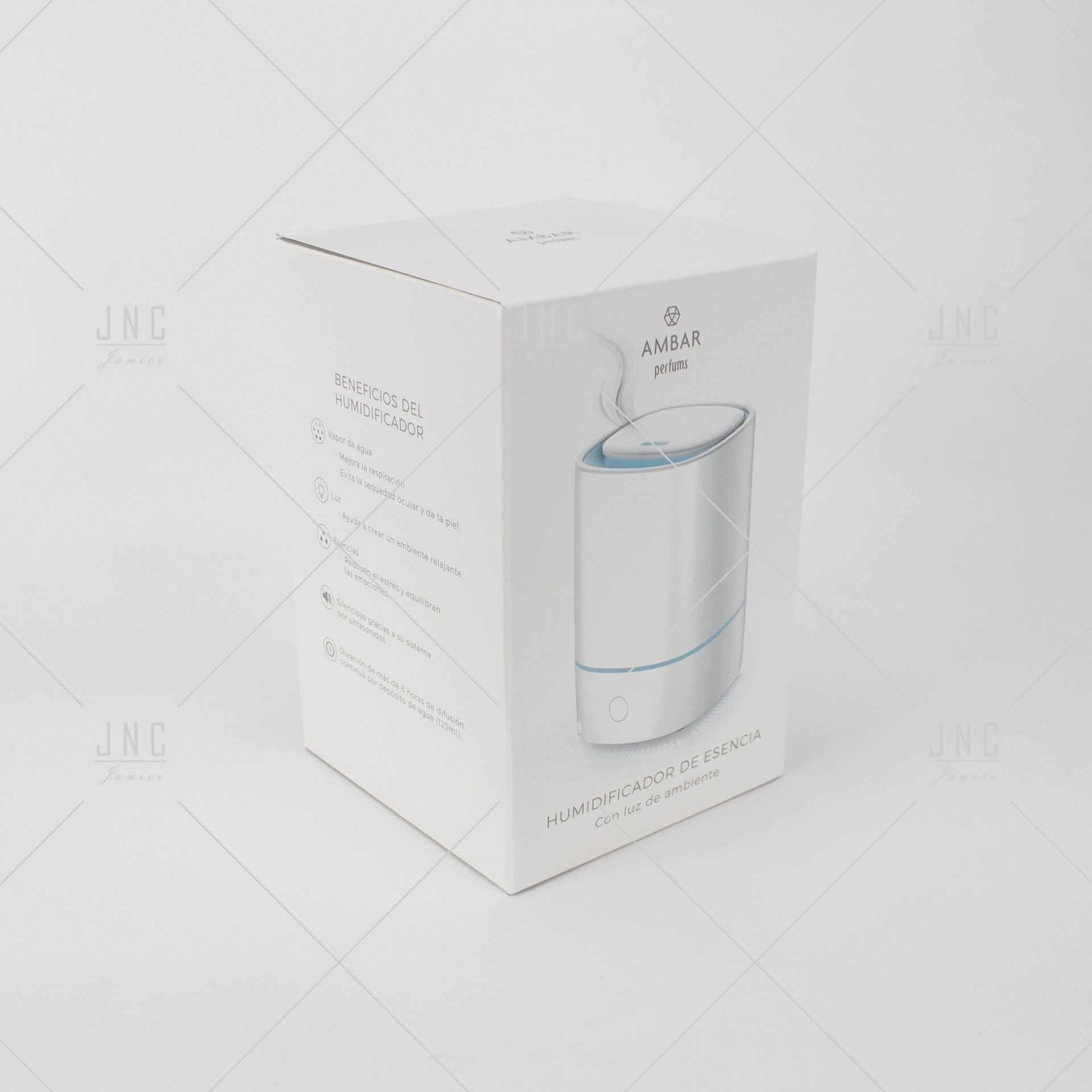 Umidificador Ambar Perfums Essence com luz ambiente.